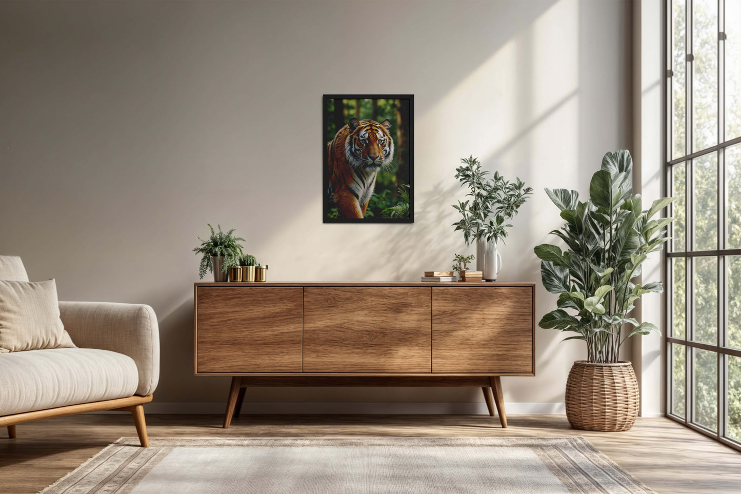 Unleash the raw intensity of the wild with Fierce Focus – Tiger in Wildlife Wall Photo Frame. This striking artwork captures a tiger’s powerful stare, radiating strength and presence. A perfect piece for bold interiors, it adds fearless elegance to any space.