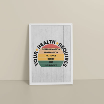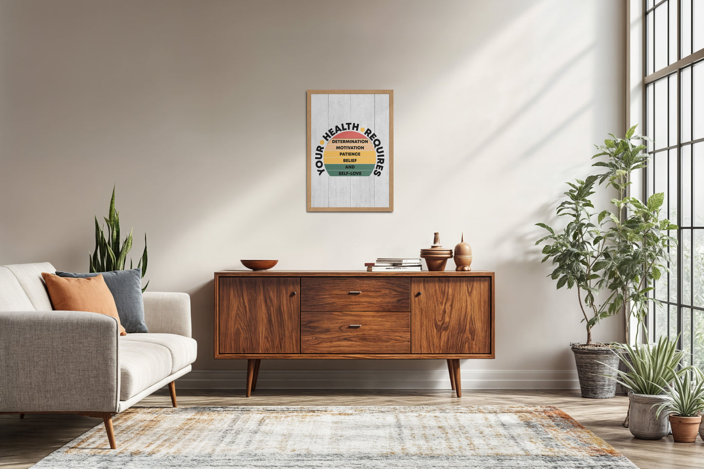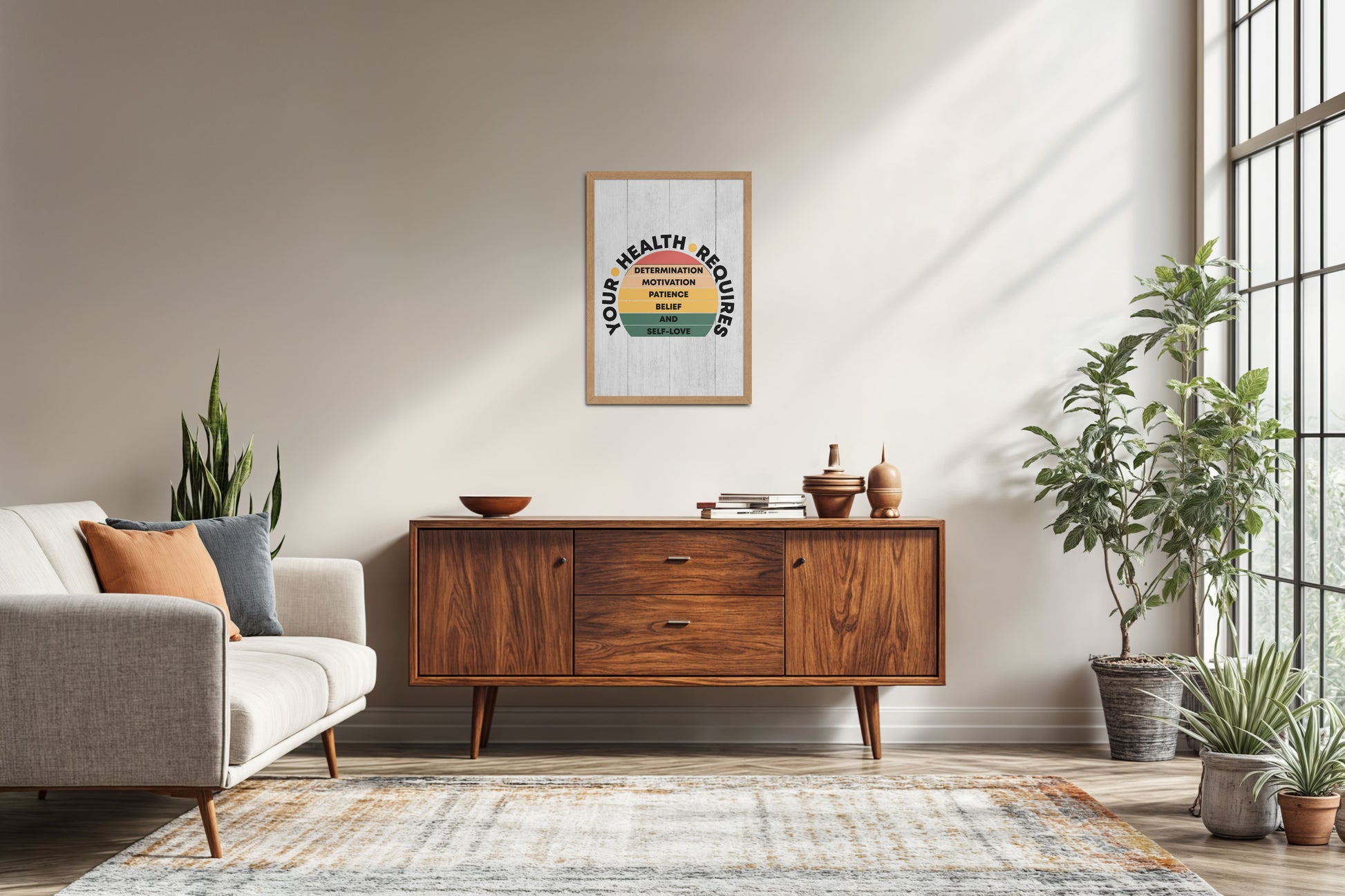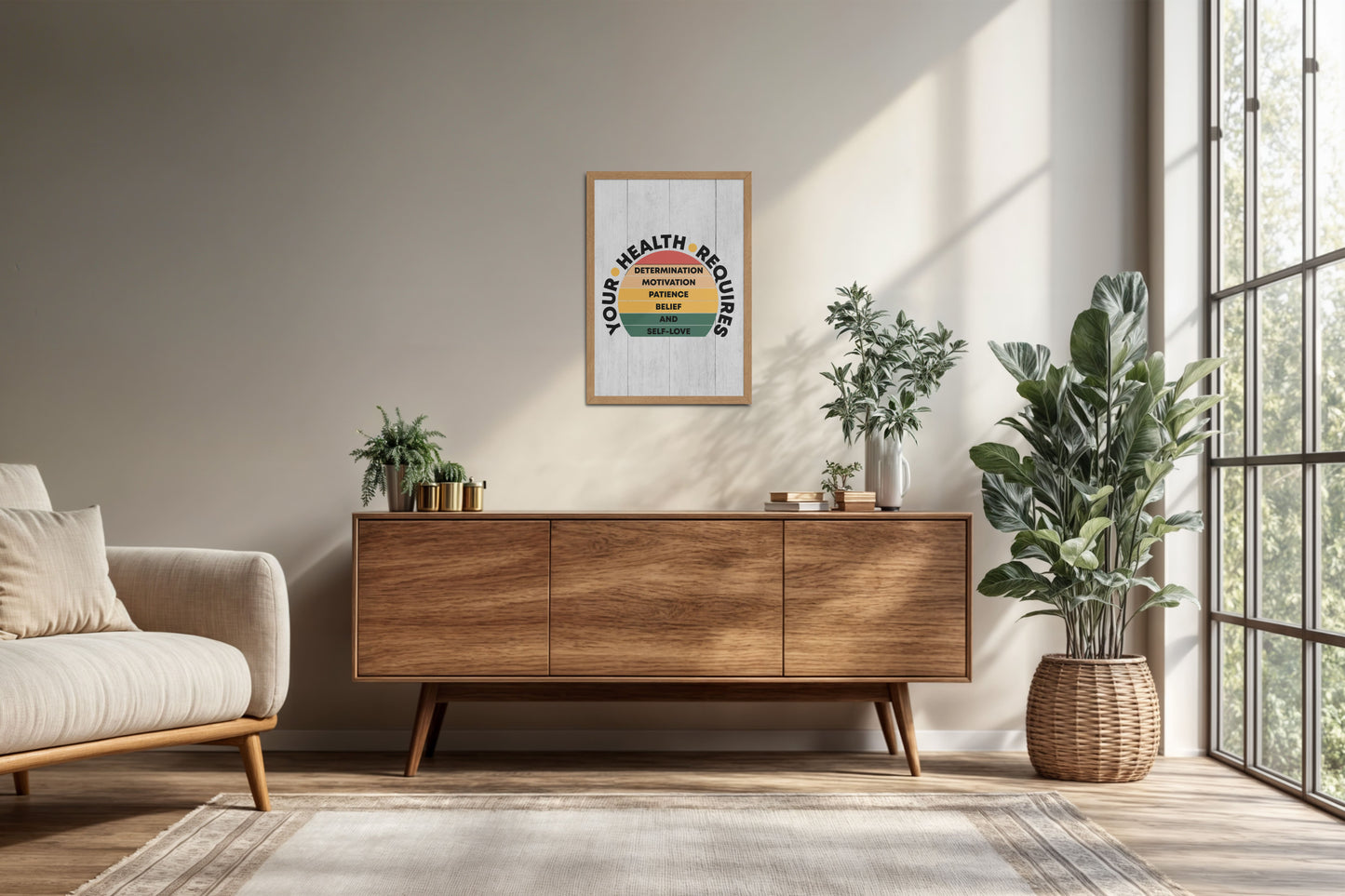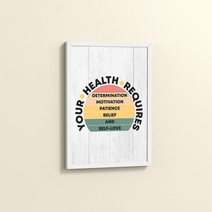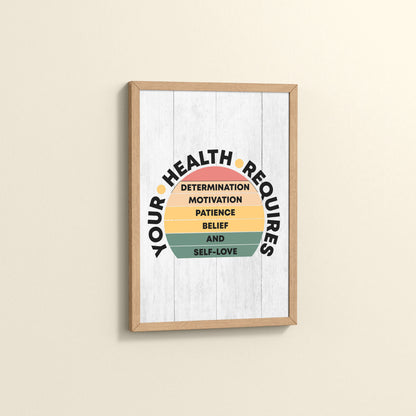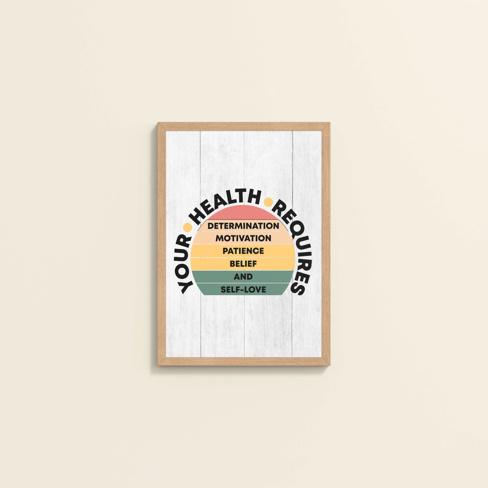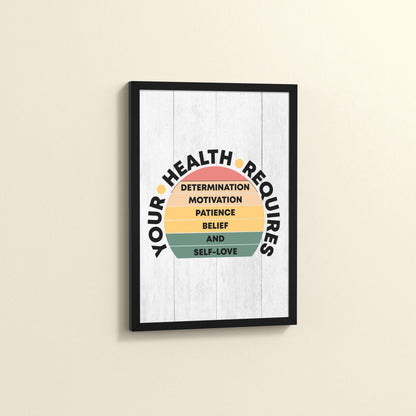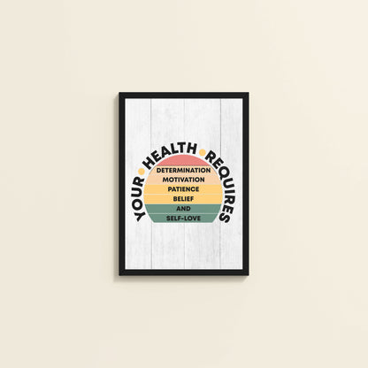 This inspiring wall art is a daily reminder that true health begins within—with patience, belief, and self-love. A perfect addition to wellness spaces, bedrooms, or clinics, it blends encouragement with elegant design. Ideal for those who prioritize mental and emotional well-being.